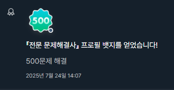 추가로, 백준에서 푼 문제가 500문제를 돌파했습니다! 👍