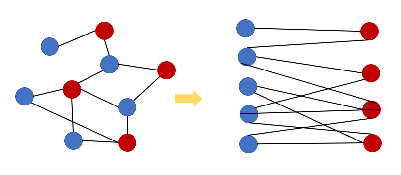 서로 인접한 두 정점을 다른 색상으로 칠할 때, 전체 그래프의 모든 정점이 두 가지 색으로 표현되는 그래프를 말합니다.