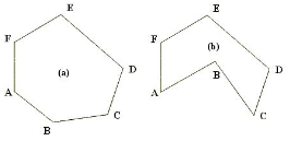 여기서, 볼록 다각형이란 "다각형의 임의의 두 꼭짓점을 연결하는 선분이 항상 다각형 내부에 존재하는 다각형을 말합니다. 문제의 예시로 보면, (a)는 볼록 다각형이지만 (b)는 아님을 알 수 있습니다.