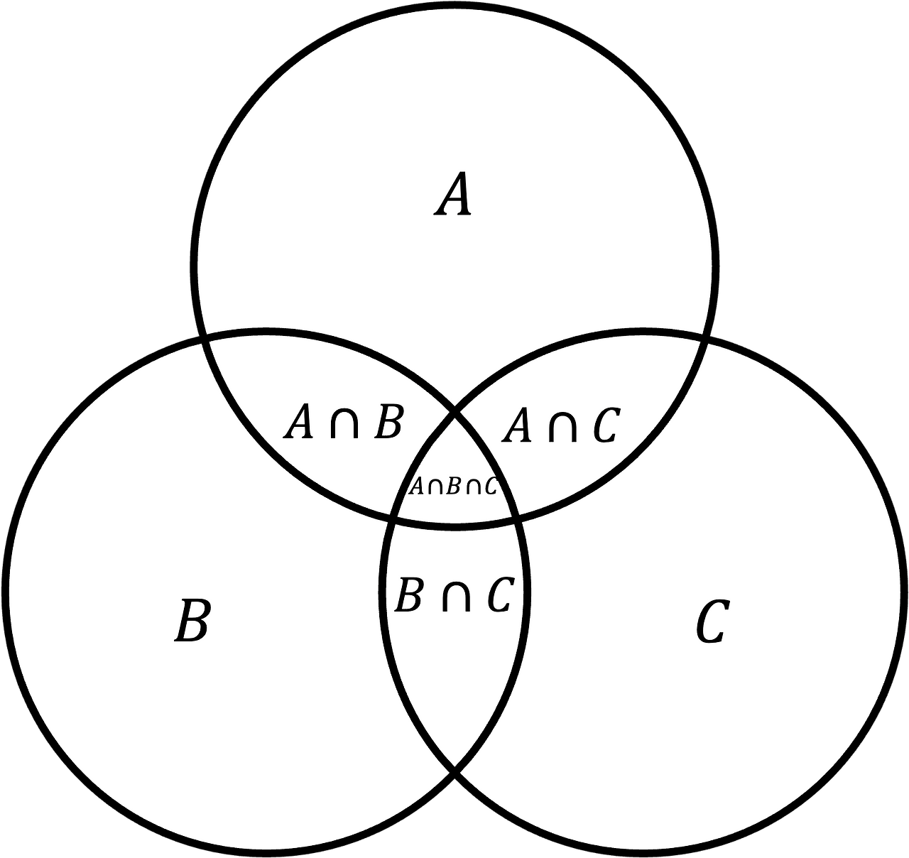 $$\vert A \cup B \cup C \vert = \vert A \vert + \vert B \vert + \vert C \vert - \vert A \cap B \vert - \vert B \cap C \vert - \vert C \cap A\vert + \vert A \cap B \cap C \vert$$