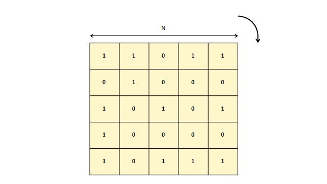 이 세가지 정보를 토대로, 회전한 뒤의 열 방향 좌표는 \(N - 1 - r + c\)임을 알 수 있습니다.